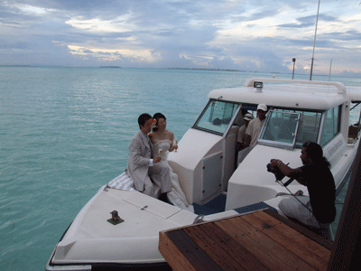 タージ・エキゾチカのウェディングプランには、フォトツアー後にサンセットクルーズのサービスがあります。